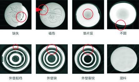 本系統(tǒng)通過(guò)采集高清的瓶蓋圖像,利用圖像分析處理技術(shù),依據(jù)各類缺陷自身顏色、紋理、幾何特性等,可檢測(cè)出瓶蓋是否存在瓶蓋高、 瓶口缺陷、液位高低等缺陷。